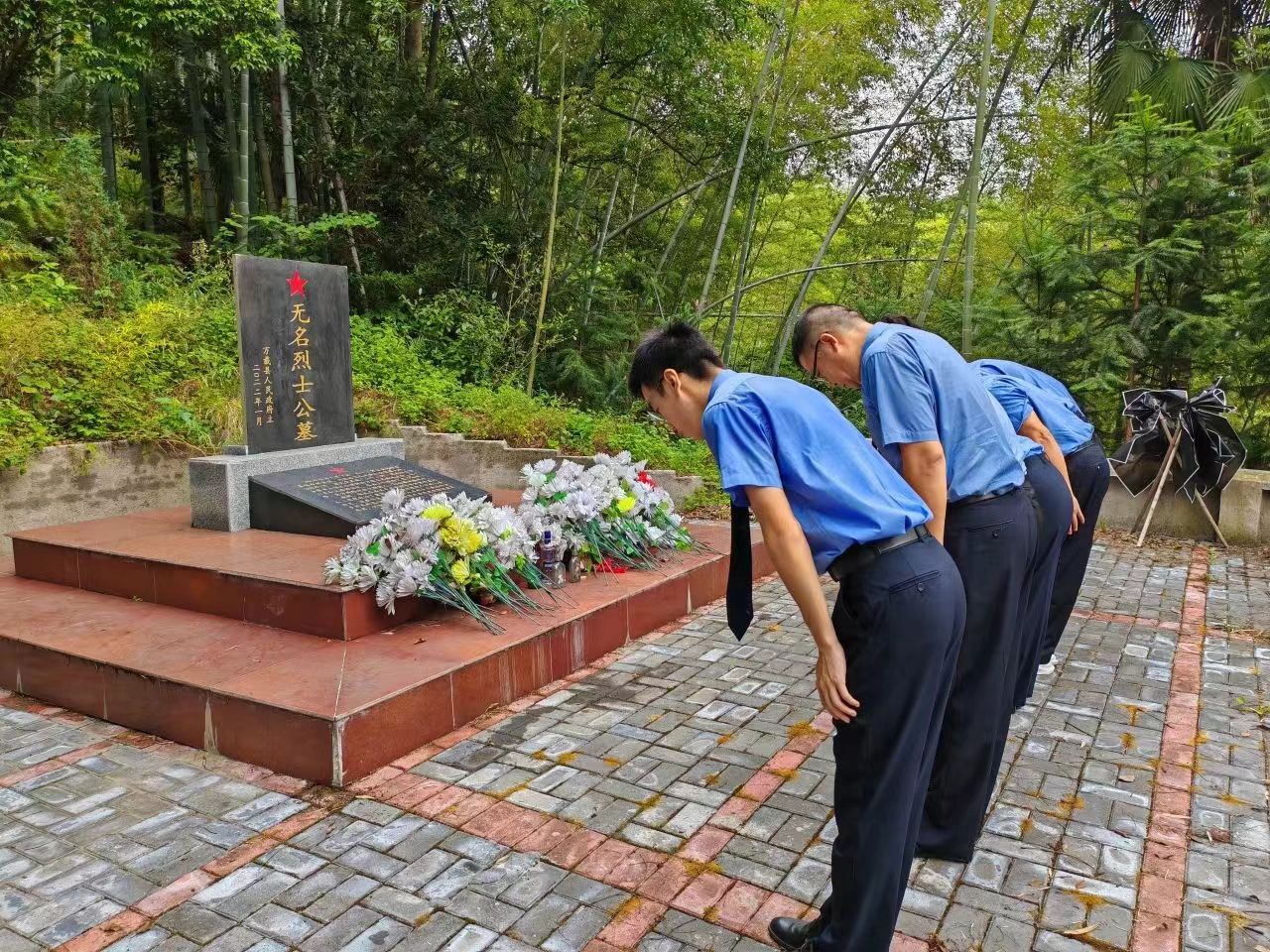 之后,干警们还祭扫了赤兴乡无名烈士墓,向那些为了国家和人民英勇献身却未曾留下姓名的烈士致以最深切的敬意和缅怀。无名烈士公墓于2021年由市退役军人事务局出资建立,将埋葬在红三医院附近以及书堂岩前、坳仔下、书堂坳、田心组等处的烈士骸骨重新迁葬,其中有名有姓的烈士73名,其他无名烈士1000余名。